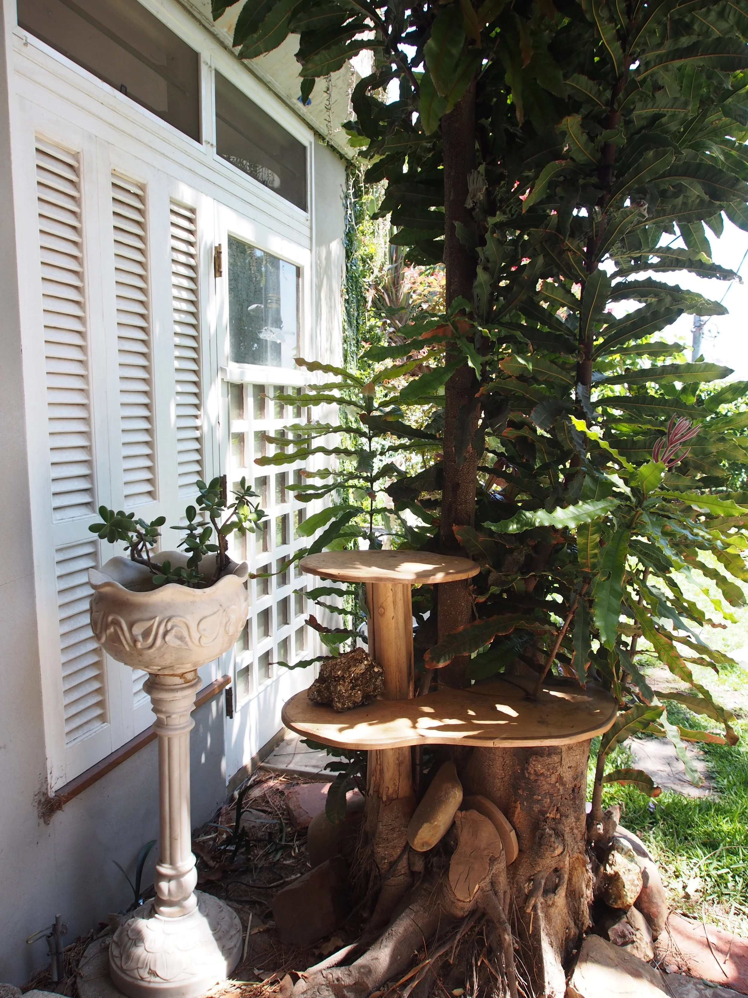 A Camphor Laurel trunk was salvaged from site as the main support column for the new opening and set amongst recycled hardwood doors at the entry to our office.