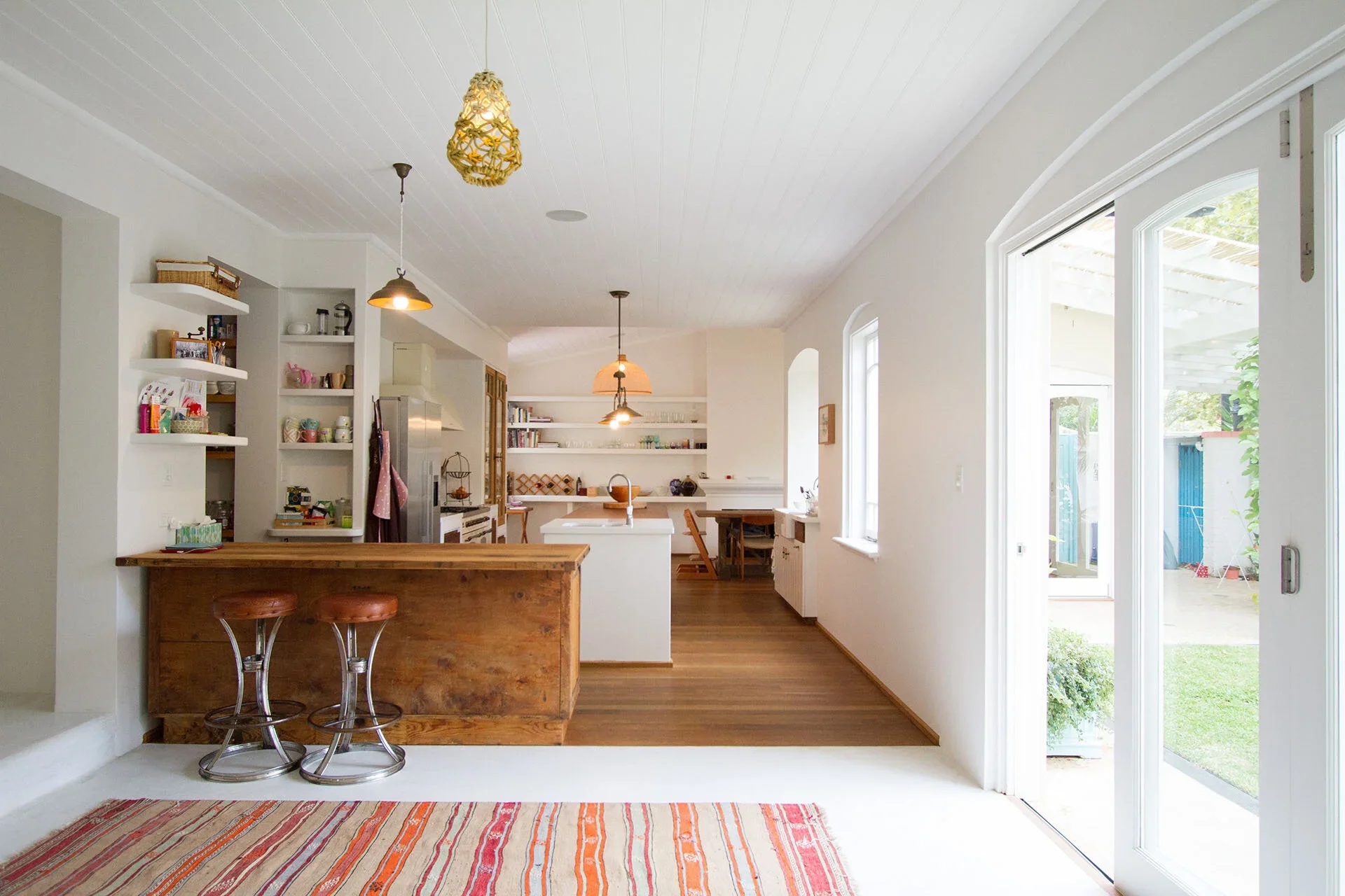 Renovation of a Victorian terrace that had been converted into a hotel using original antique pieces as the inspiration for the new joinery. Original features were combined with new plastered built-in floating shelves and niches and an eclectic collection of tiles. Two internal courtyards bring natural light and air into the dense urban setting.