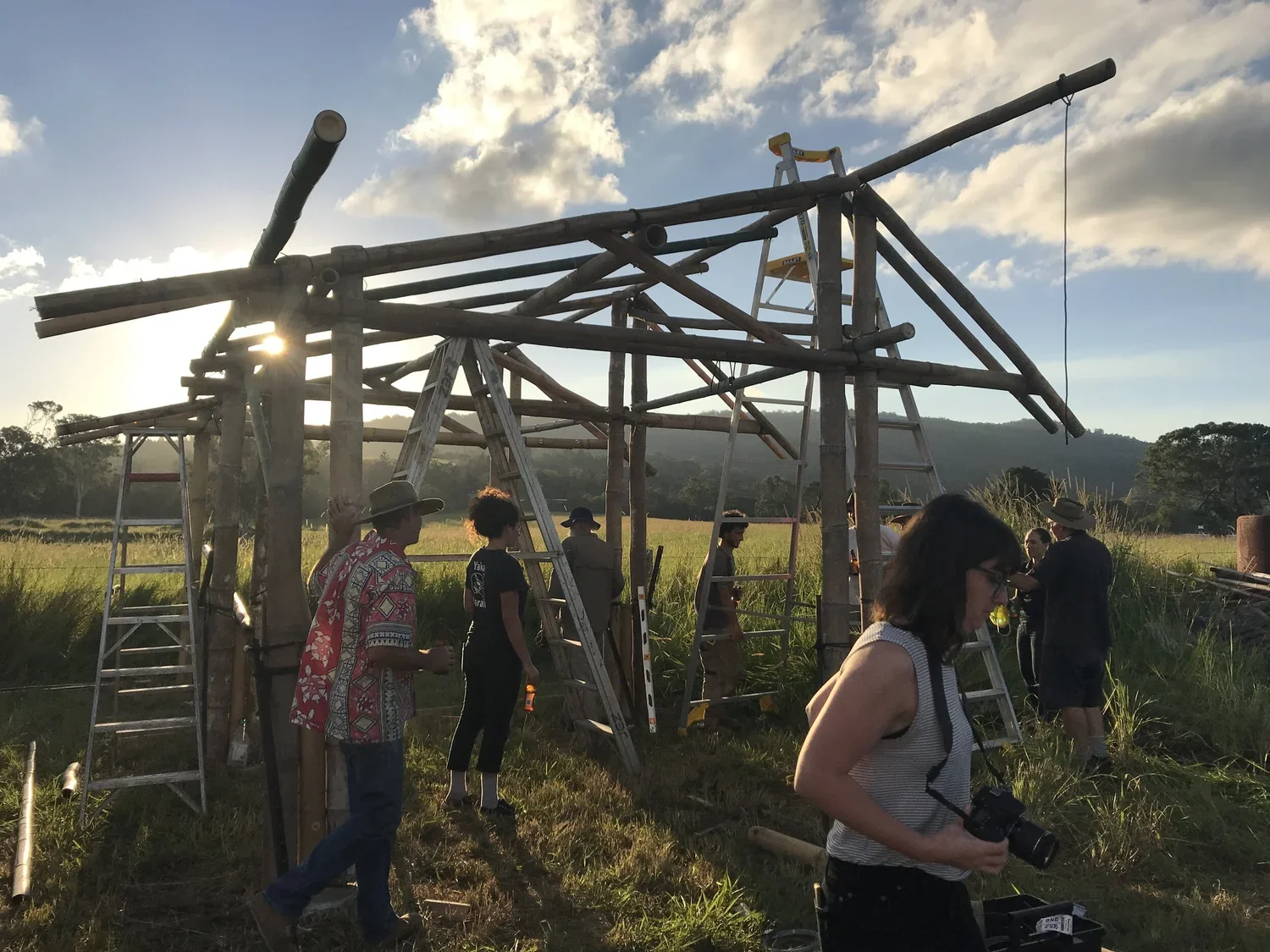 The collaboration between Taiwanese artist Wang Wen Chih and Cave Urban in 2013 proved to be a catalyst for encouraging Woodford’s engagement with fostering a culture of bamboo cultivation and design. Partnering with the Woodford Folk Festival and Cave Urban, Arief Rabik has been working to help grow the bamboo community in Australia. Utilising the Woodford site as a testing ground for further research that can directly translate back to Indonesia, Arief has been prototyping a new treatment for bamboo.