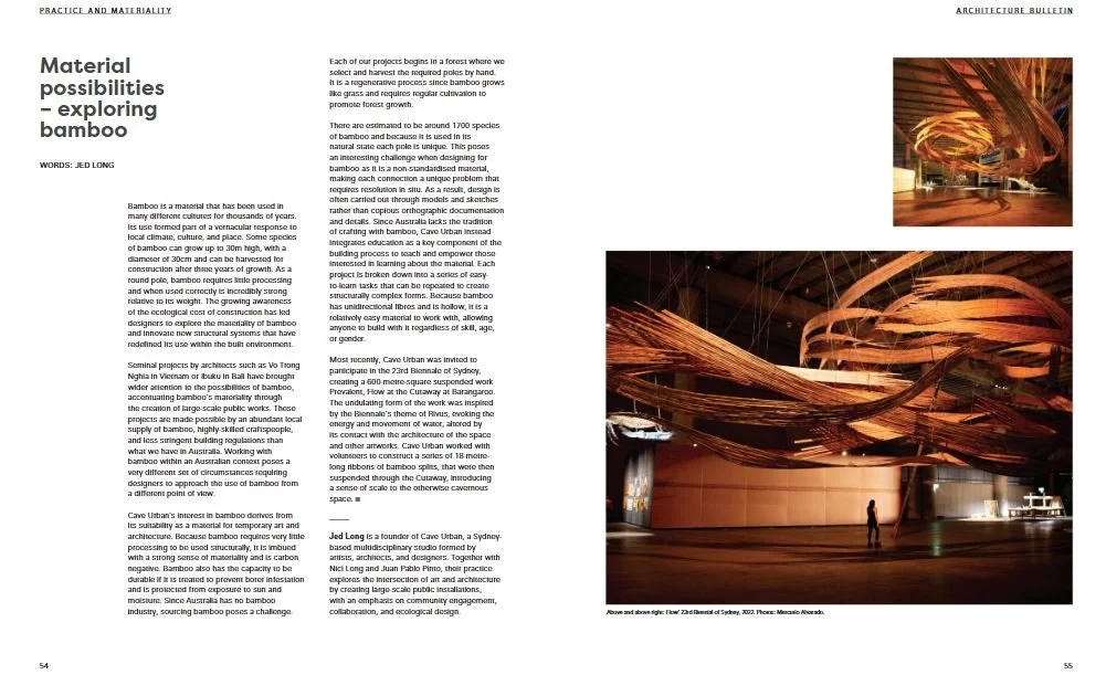 Juan Pablo Pinto, Bamboo Art Installations and Temporary Structures in Australia; Recent Works by Cave Urban. Presented at the World Bamboo Conference in Mexico, 2018